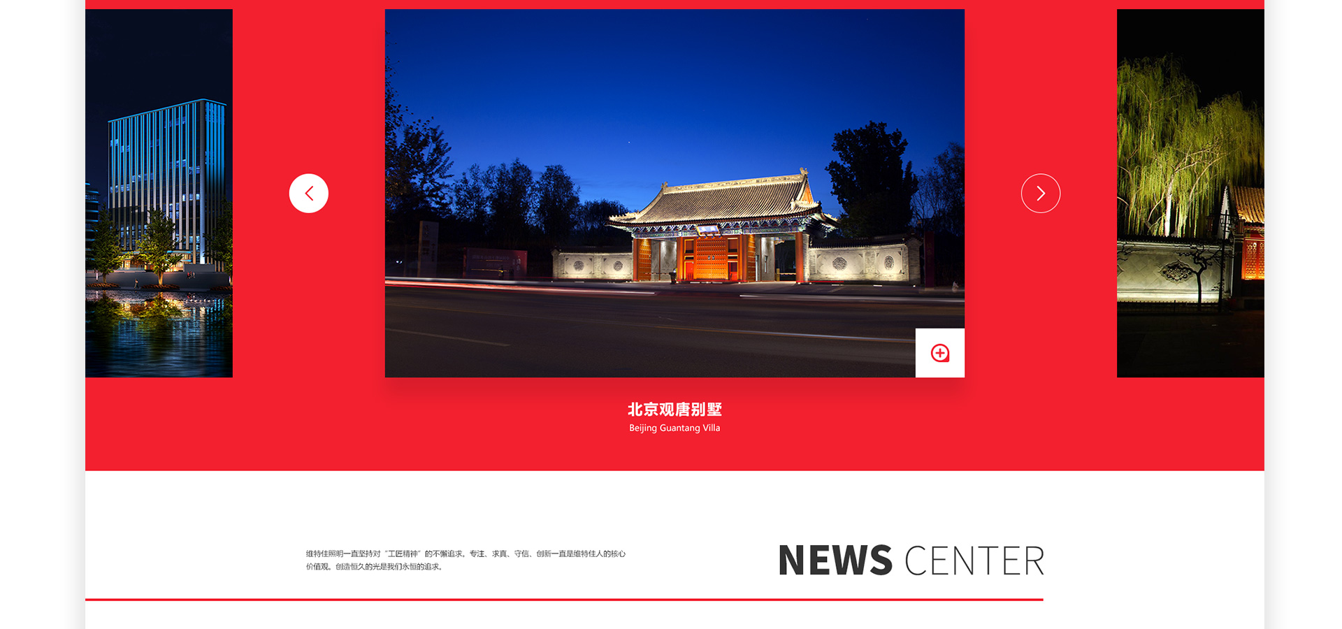 北京维特佳照明工程有限公司成立于2004年,专注于中高端光环境设计及营造。公司成立至今,通过对每一个照明项目孜孜不倦的用心服务,先后获得了众多国际国内奖项。与此同时,也赢得了客户的普遍认可与好评。维特佳照明着力通过适宜的光环境的营造,巧妙的处理光、人、环境的三者关系,从中找到彼此间最佳契合点。更多的用哲学的关系处理彼此的存在关系。维特佳照明一直坚持对“工匠精神” 的不懈追求。专注、求真、守信、创新一直是维特佳人的核心价值观。创造恒久的光是我们永恒的追求。