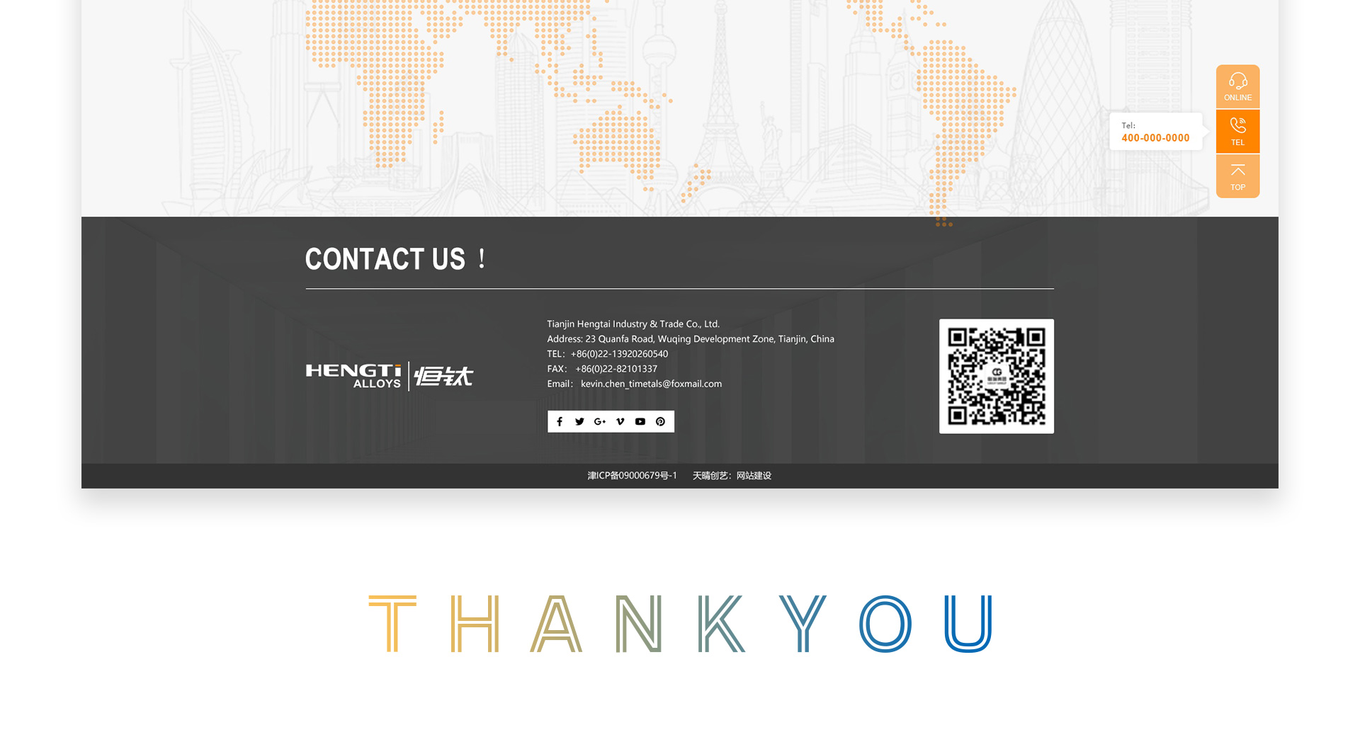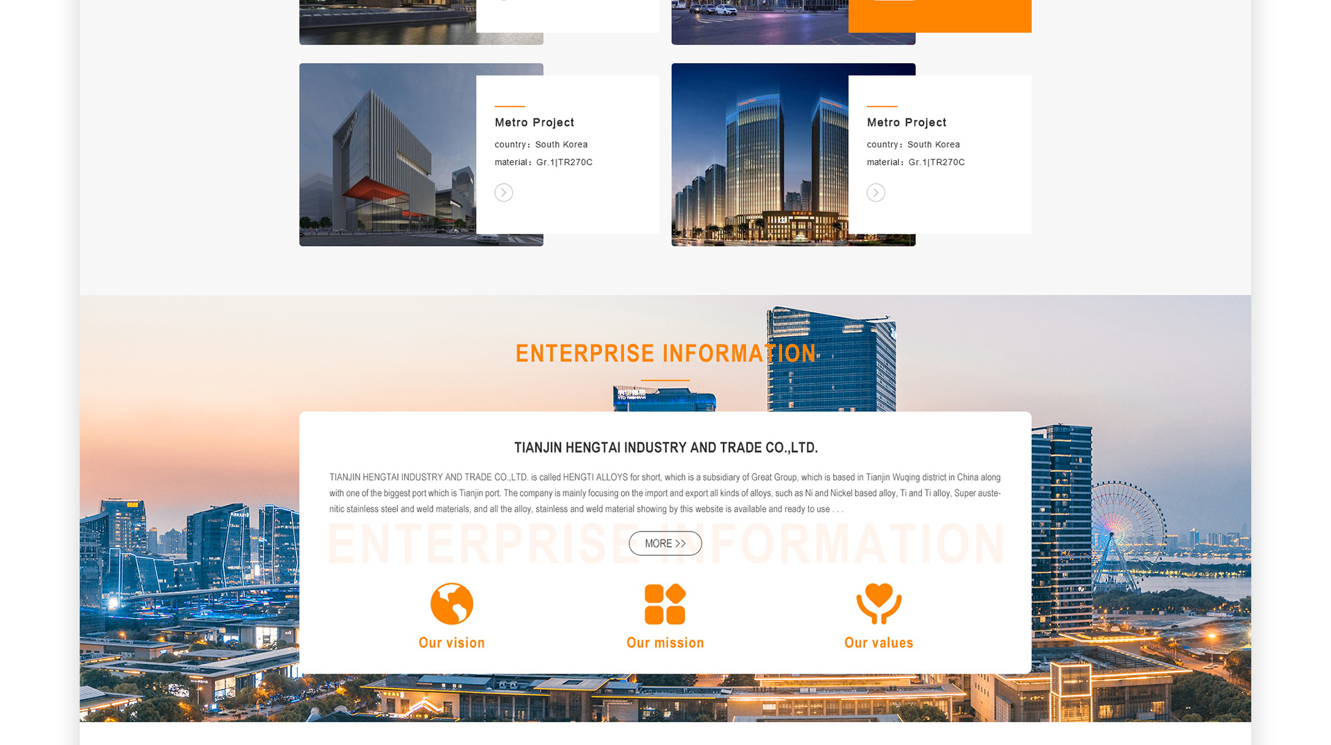 经过网页设计、网站动效设计、网站后台开发,天津恒钛网站建设项目顺利完成!天津恒钛通过多年的稳健经营,与数十个国家的钢铁集团公司建立起了业务来往,将先进的特种合金、金属材料引入国内,为国内板式换热器行业、波纹管补偿器行业、石油化工装备业、造纸机械业的发展和电厂脱硫脱硝项目、海水淡化项目、焊接管及焊管项目、复合板项目的顺利推进做出了极大贡献。