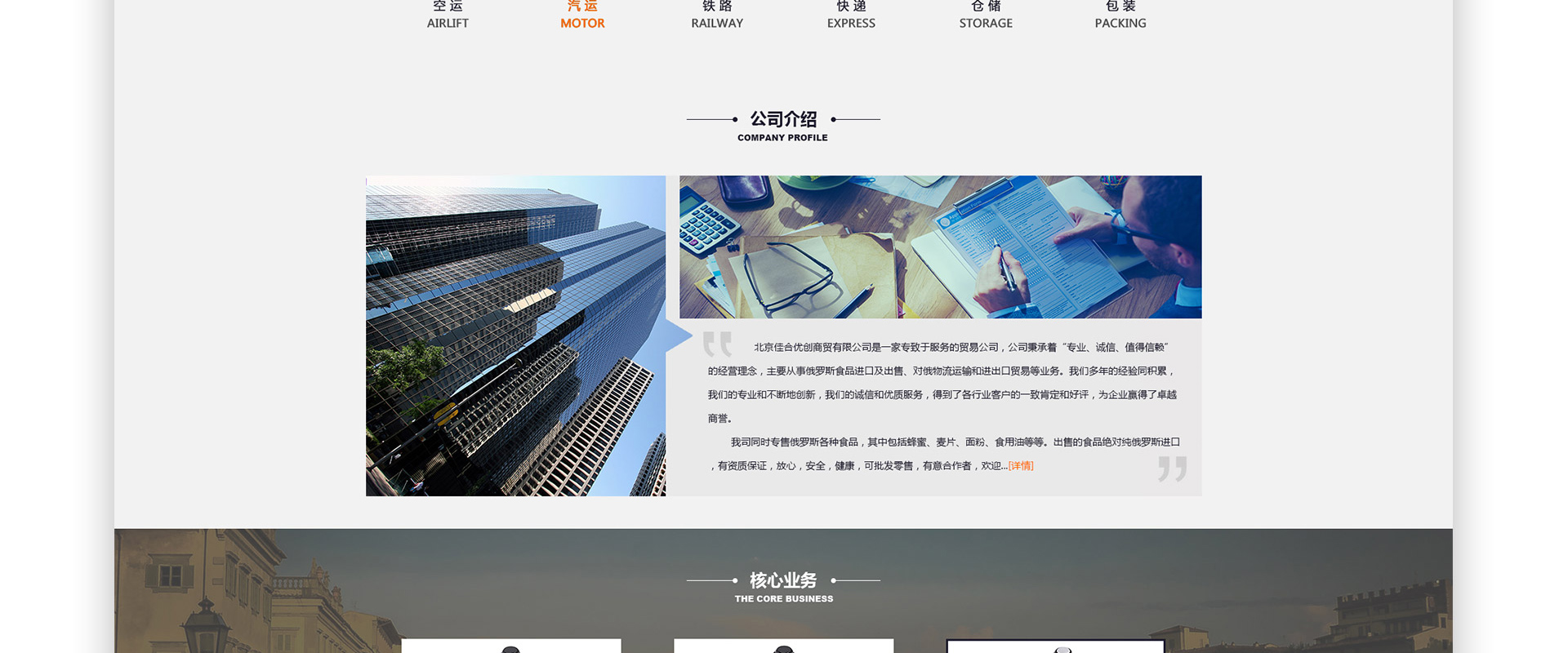 北京佳合优创商贸有限公司,初期成立于2008年,公司主营中俄进出口业务,对俄罗斯的陆运、空运及海铁运输服务,还有包装,仓储,验货,北京到俄罗斯双向快递的服务,主要进出口服装、鞋、各种小百货、箱包、家具、电子产品、机械设备等。是一家专业从事中俄两国集物流与清关于一身的物流集团公司,致力于白色清关,并与俄海关建立了深厚广泛的合作基础,一手正规清关,价格适中合理,流程安全高效,在两国贸易往来中赢取了广大客户的充分信赖。公司总部设在北京,在广州,深圳,义乌,苏州均设有办事处,有稳定长期的合作伙伴。 我司在多年发展历程中累积了丰富完善的国际运输经验。我们的专业和不断地创新,我们的诚信和优质服务,得到了各行业客户的一致肯定和好评,为企业赢得了卓越商誉。公司内部成员具备丰富的国际货运操作经验和专业实务知识,深入了解俄罗斯国家法律法规及海关政策。由俄罗斯、哈萨克斯坦和中国的精英业务专员组建的报关团队和业务团队,可针对不同国籍的客户做到高效沟通,热忱服务。在俄罗斯具有丰富的清关经验,与当地海关保持良好的合作关系,为客户提供快捷可靠的清关服务。与各大联邦海关从事关于办理货物清关,商业许可证及所需要的货物随行文件的办理工作。可为有不同需求的客户量身定做解决方案,提供最合理的清关方案,以达到安全、快捷,经济的双赢目的,为客户在境外的经营提高竞争力,成为您中俄贸易中最佳的合作伙伴! 我司秉承多元化发展,有白关海运,海铁联运,陆运,空运等多种运输方式可供厂商选择,尽最大力度以满足客户的不同需求。可提供白关文件,签署买卖合同,转帐结算, 代转货款;并能够以绝对优势的价格,安全快捷的将货物运送到客户指定的目的地。 我司同时专售俄罗斯各种食品,其中包括蜂蜜、麦片、面粉、食用油等等。出售的食品绝对纯俄罗斯进口,有资质保证,放心,安全,健康,可批发零售,有意合作者,欢迎与我司联系! “诚正待人”是我司的经营准则,凭着“呈中华之美,创卓越品质”的信念,信守合同,以诚待客,现已赢得广大客户的大力支持。 北京佳合优创已为您架起中俄贸易的绿色通道,愿为您在中俄贸易的发展中助一臂之力!热忱欢迎海内外顾客前来洽谈合作,共铸辉煌!