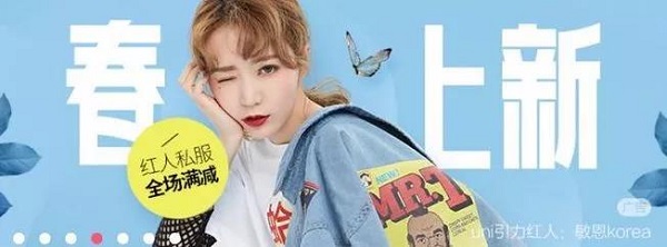 这种点缀比较简单,就是把产品的卖点提炼出来,使用背景的对比色或者邻近色将卖点整个突显出来,此类点缀多使用在年轻女性为主导用户的产品 Banner 中,比如衣服,首饰、护肤品等,难度系数不大,难点在于对色彩及卖点提炼的把控。